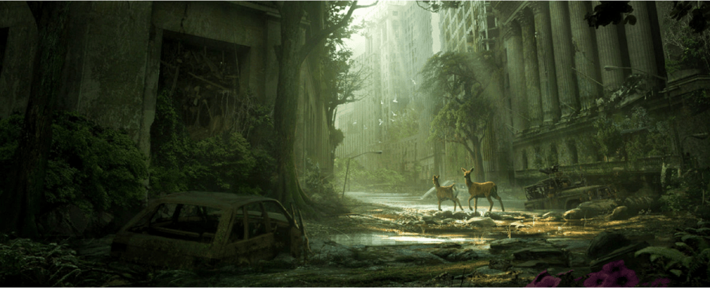 Le case, i negozi, gli uffici verrebbero spazzati via in un soffio. Non potremmo più ritornare sulle strade, ogni cosa sarebbe persa così come ogni possibilità di un ritorno alle attività o di ripristinare routine. Non servirebbero più le leggi, il denaro, le regolamentazioni, nulla. Ora facciamo passare 50 anni. Cosa vedremmo come scenario? Probabilmente questo: