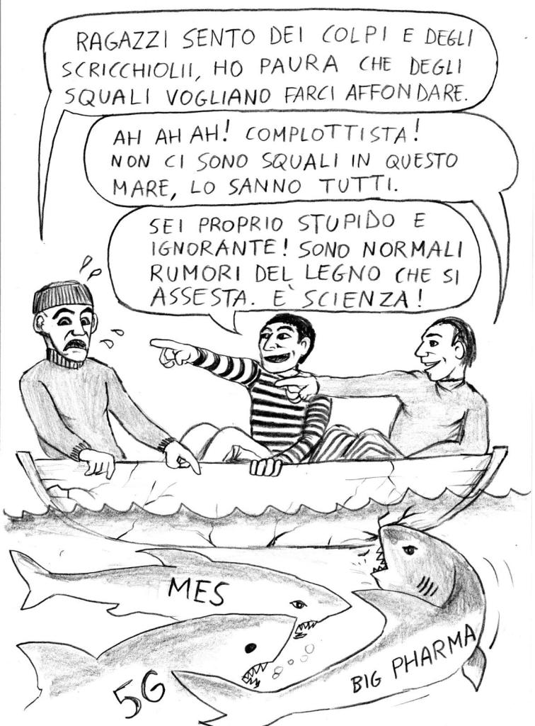Accadimenti del genere avvengono tutti i giorni, e di fatto assistiamo oggi alla creazione di un bavaglio (o di una mascherina, come preferite) davvero potente: l’etichetta del complottista rischia di mette a tacere dubbi, domande, richieste di approfondimento come mai fino ad ora. Molte persone infatti, intimorite dal pericolo di essere definite complottiste, se ne stanno zitte e chiudono in soffitta i loro punti interrogativi, adottando in modo sicuro le visioni dominanti e attendendo passivamente che le decisioni vengono prese. Il risultato psicologico è quello di fortificare ulteriormente dentro di sé le convinzioni adottate per comodità, al fine di diminuire la dissonanza indotta dalle vocine che si sentono arrivare dalla soffitta, fino a metterle a tacere definitivamente.