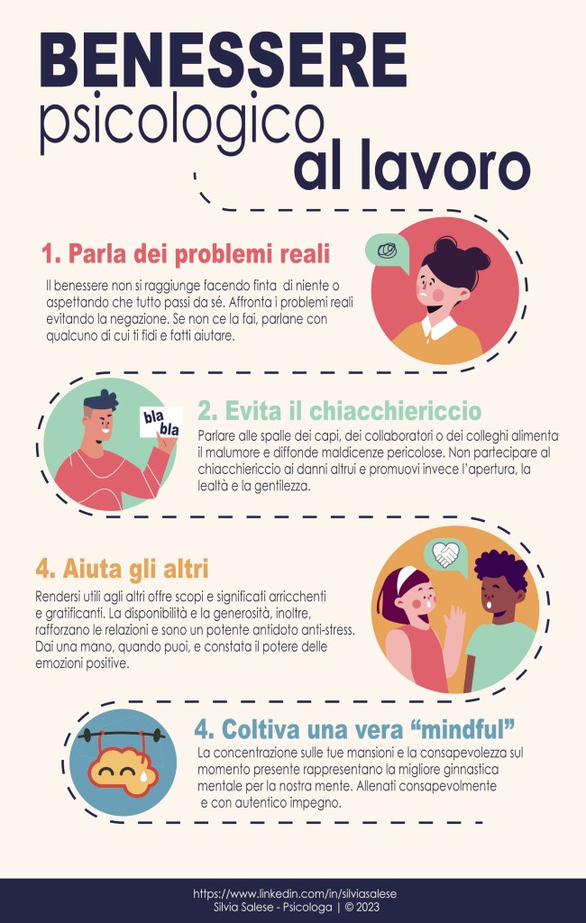 In conclusione, il benessere lavorativo è un obiettivo raggiungibile attraverso un approccio psicologico basato sulla consapevolezza, la comunicazione costruttiva e l’altruismo. Abbracciare questi principi può migliorare significativamente la nostra esperienza sul luogo di lavoro e promuovere un ambiente più sano e produttivo per tutti.